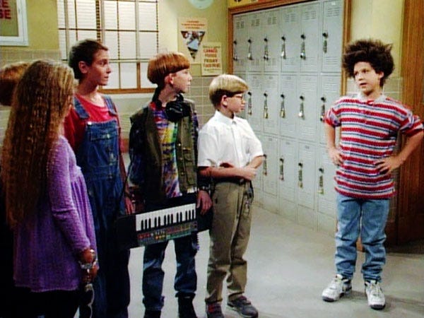 An early episode of Boy Meets World, “Cory’s Alternative Friends,” had a huge impact on me. I now know the episode was (and is) a fan favorite–at the time, I thought I was the only person in the world who taped it and watched it 100 times. In the episode, Cory is made to feel bad about his curly hair due to lots of ribbing from his friends and classmates. At the same time, he is paired with the eccentric Topanga, who doesn’t seem to care what others think of her. While Cory tries–and fails spectacularly–to straighten his hair, his plan to blend in is thwarted. But Topanga finds him interesting, even resulting in a first kiss for them both–proof that “looking weird” and not caring too much about others’ opinions might lead you to a connection you never saw coming. I learned at a young age that it was ok to be different, and that giving someone I felt was “weird” a chance could open my world, teach me something new, and gain me a new friend.